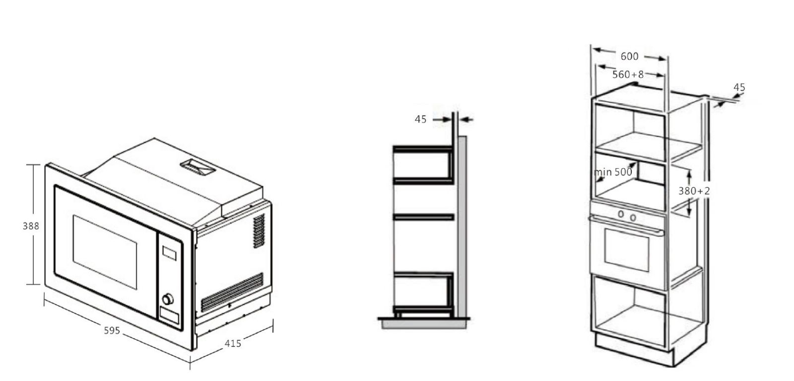 25公升容量 電子計時器 0到95” 按重量/時間進行除霜 數位控制 八種火力模式 燒烤功能 八個自動菜單 數位時鐘 31.5cm旋轉板 內部使用不鏽鋼內膽