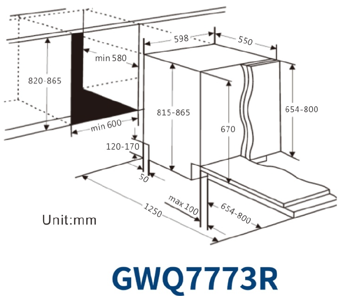 W598xD550xH(815-865)mm