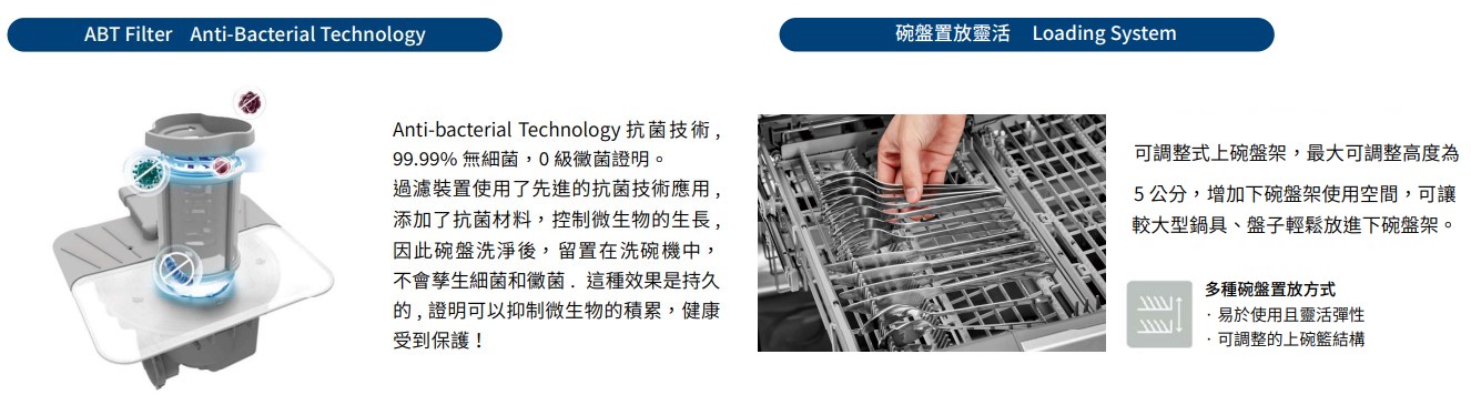 強力洗 / 加強烘乾 / 快速洗 / 節能洗 / 抑菌儲存